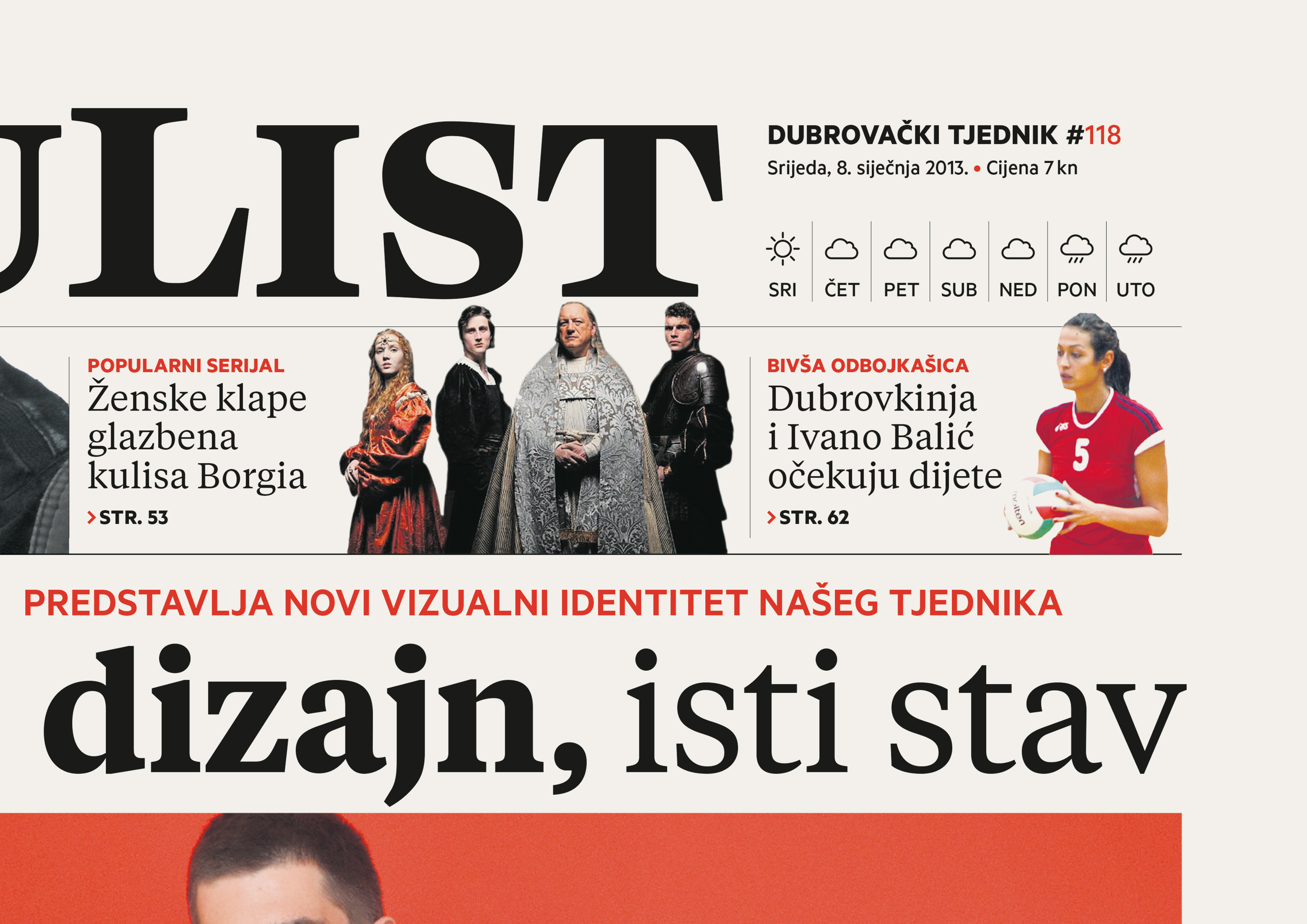 DuList is a small newspaper that comes out in Dubrovnik with local weekly content. The task was to redesign the newspaper completely and set up a strict system in order to keep the new design through future numbers.